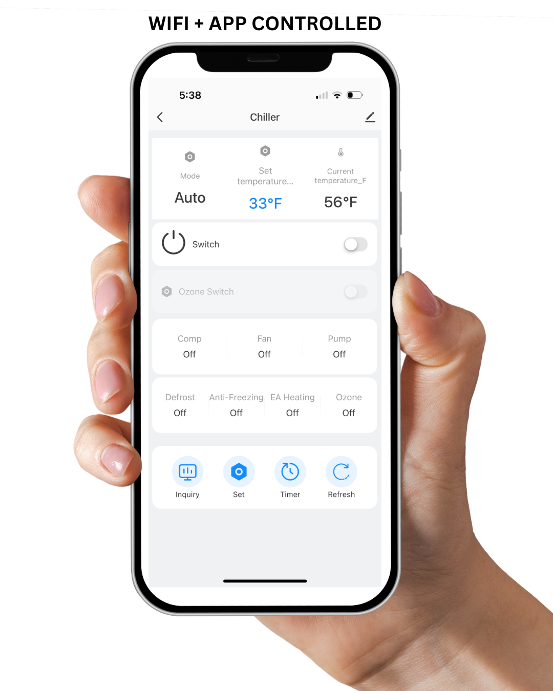 Our Wood + Steel Cold Tub System is powered by our Eu4ric 1HP Chiller. It can cool the water down to 33° or heat the water to 104° in roughly 0-3 hours depending on starting ambient temperatures.